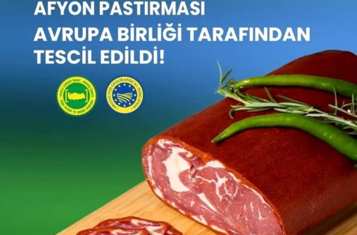 Tarım ve Orman Bakanı İbrahim Yumaklı, Afyon Pastırması’nın Avrupa Birliği'nden coğrafik işaret tescili aldığını...